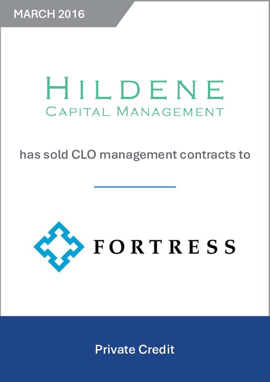 Hildene Leveraged Credit, LLC (“HLC”) and an affiliate of Fortress Investment Group LLC (“Fortress”) announced that an affiliate of Fortress has agreed to purchase from HLC the management contracts for four CLOs with total assets of $1.4 billion. The sale marks HLC’s exit from the CLO business.